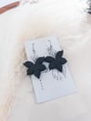 Handmade light-weight polymer clay earrings; jet black clay with sparkles, accented with sparkly CZ charms
